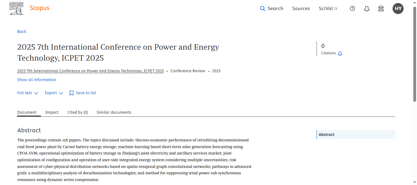 2026 the 8th International Conference on Power and Energy Technology (ICPET) will be held in Chengdu, Sichuan, China during July 28-31, 2026. The conference is sponsored by Sichuan University, PES, IEEE, co-sponsored by Beijing Jiaotong University, and North China Electric Power University, hosted by College of Electrical Engineering, Sichuan University, co-hosted by School of Electronic Engineering, Beijing Jiaotong University, School of Electrical and Electronic Engineering, North China Electric Power University, Energy Storage and Electrotechnics Department in China Electric Power Research Institute, patrons with Tianjin University, Southeast University, Lanzhou Jiaotong University, media supports from Proceedings of the CSEE, Journal of Automation of Electric Power Systems, Journal of Modern Power Systems and Clean Energy, Journal of Power System Technology, Journal of High Voltage Engineering, Journal of Electric Power Information and Communication Technology, CESS Journal of Power and Energy Systems, Journal of High Voltage, Journal of Energy Internet, Journal of Cyber-Physical Energy Systems, Journal of Energy Conversion and Economics, Journal of Electric Power Automation Equipment, Journal of Electric Power Construction, Journal of Electric Power, Shandong Electric Power.